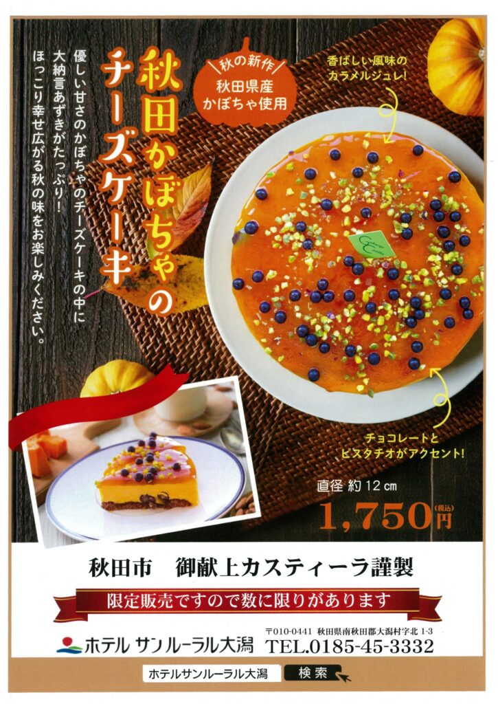 【売 店】~秋の新作~秋田かぼちゃのチーズケーキ 新発売!