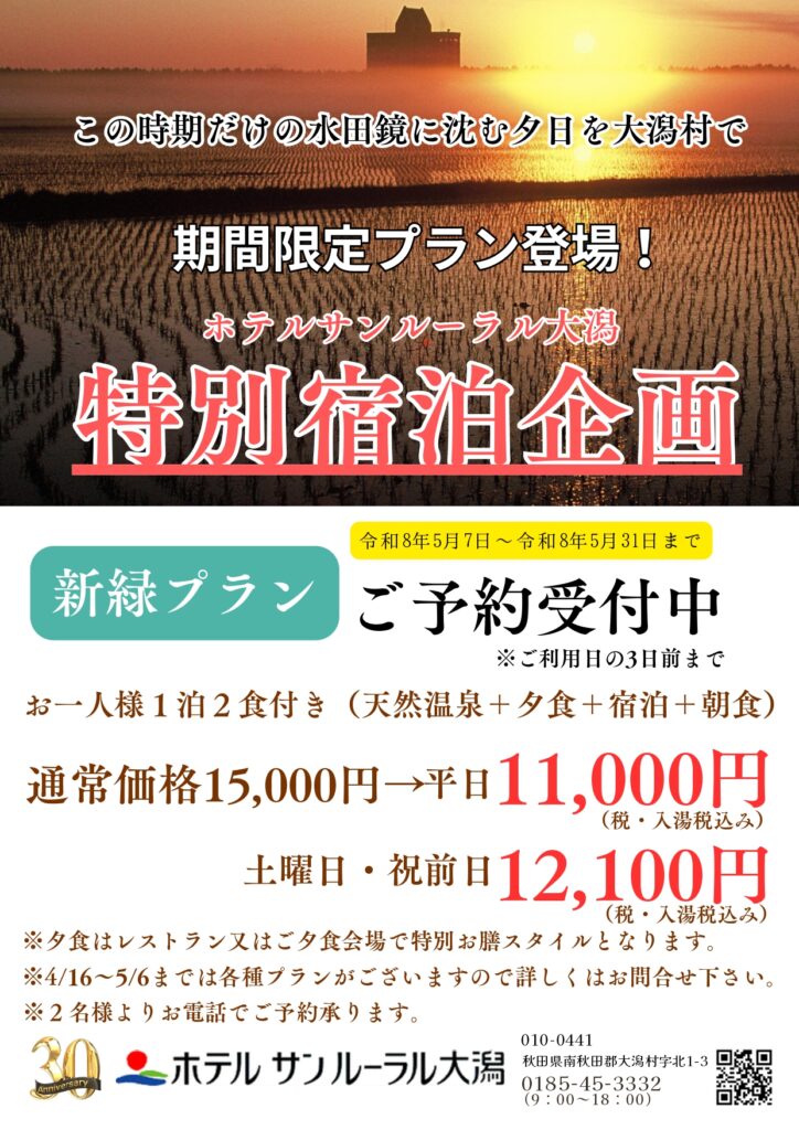 新緑プラン(一泊二食付き)が登場!